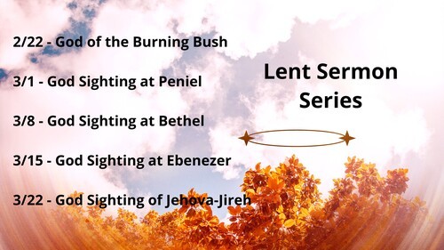 - Sundays, Lent Sermon Series, "God Sightings" at 9 AM, Sunday School for children age 4 - grade 5, nursery available