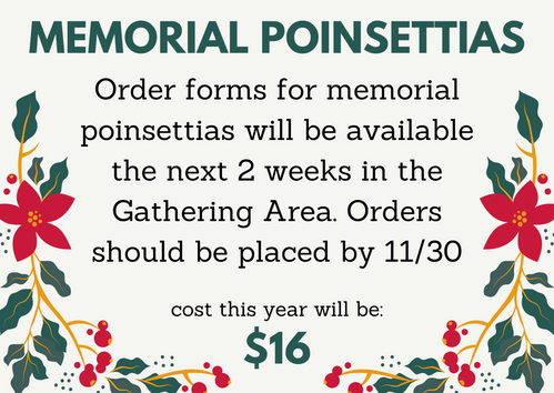 Please join us for after church fellowship and light refreshments in the Gathering Area.